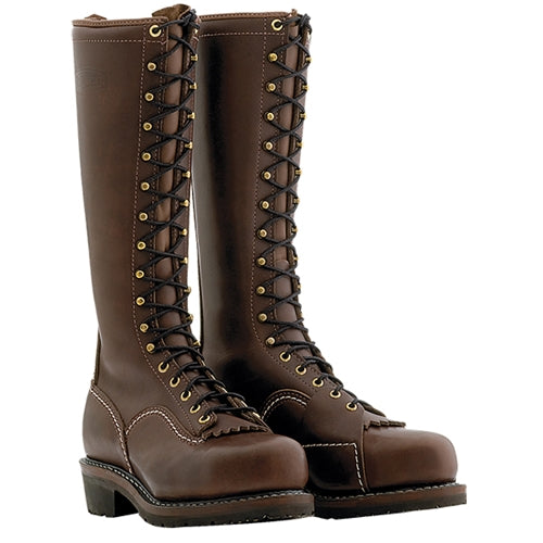 This full grain leather boot with removable false tongue combines classic Wesco style with the highest safety standards. A lighter weight composite toe and vibram® mini-lug sole offer protection and traction while climbing. The semi lace-to-toe design and slightly arched steel shanks provide comfort and maximum support. Electrical hazard (EH) rated. Meets ASTM standard F2413-05.